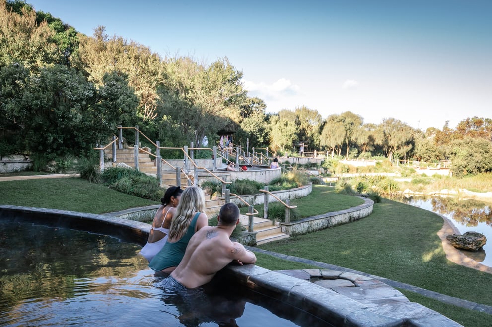 The pools in both the Bath House and Spa Dreaming Centre are filled with pure geothermal mineral-rich waters integrated into the natural landscape. Our Bath House offers family friendly, social bathing in over 50 globally inspired hot springs, two cafes — one fully licensed — and picnic area suitable for guests of all ages and groups. While the Spa Dreaming Centre is reserved for guests aged 16 years and over, and offers quiet areas, private and communal bathing options, spa treatments and a licensed café. Learn more about the key differences between our two bathing areas.